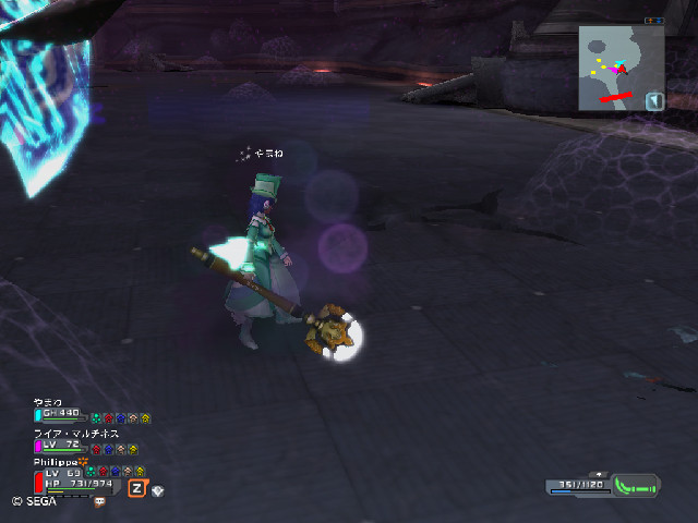 (1)パーティなのでHP半分以下?黄色くなる前にレスタかけてる。
